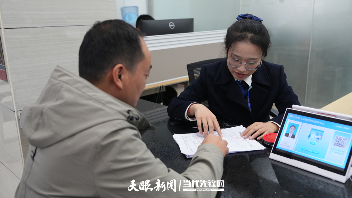 在黔东南州政务服务中心,工作人员指导群众办理业务。(黔东南州投资促进局供图)