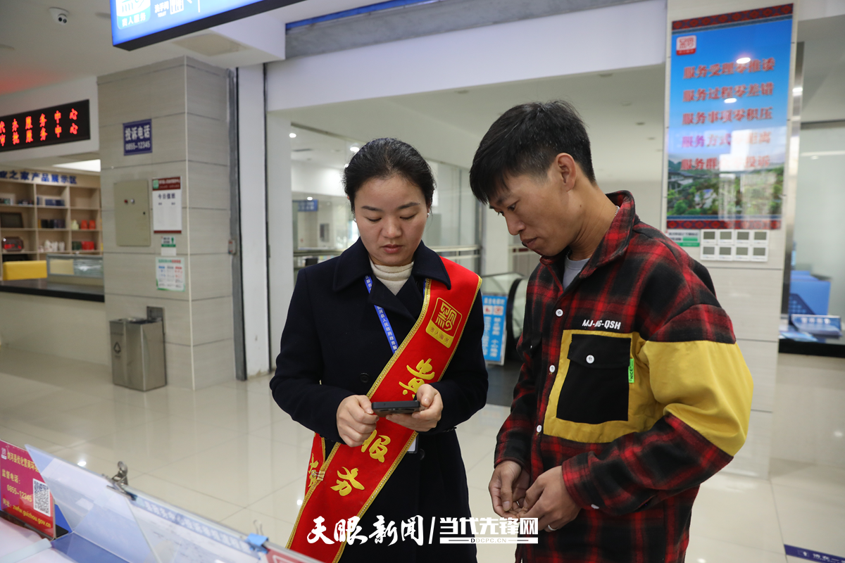 剑河县政务服务中心工作人员正在帮助群众在手机线上操作业务办理。(杨婷 摄)