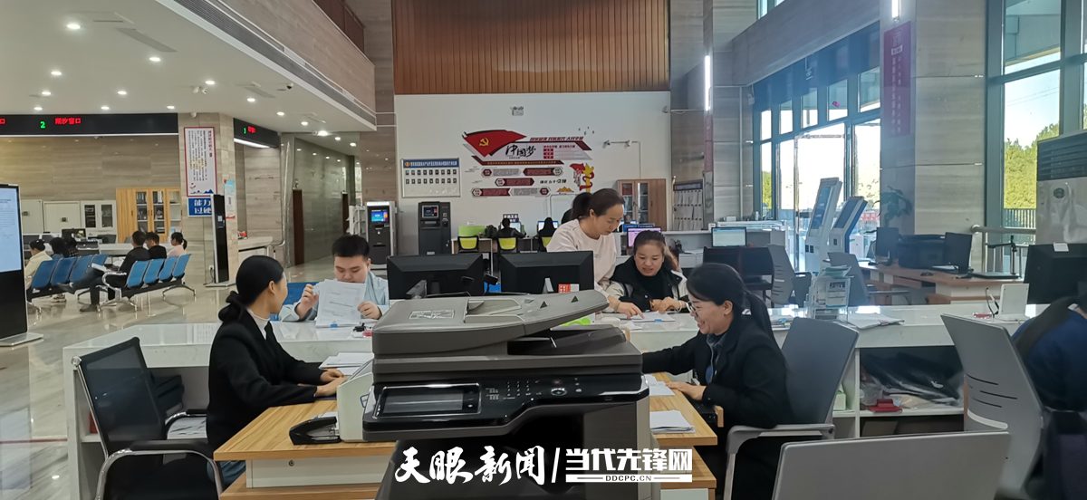剑河县政务服务中心综合窗口人员正在给群众办理业务。(杨婷 摄)
