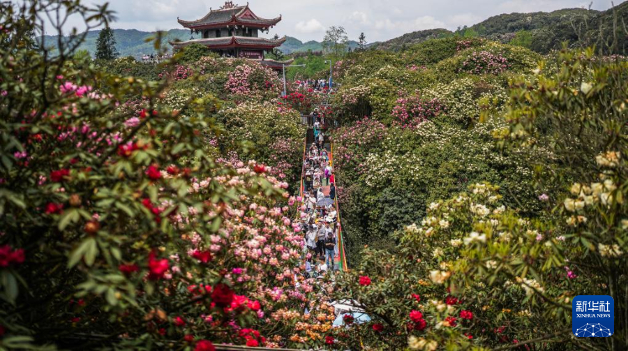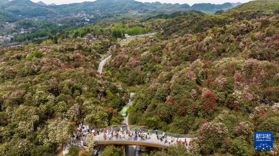 四月芳菲,大地春归。近日,贵州省毕节市百里杜鹃景区的杜鹃花开始进入盛花期,前来观赏游玩的游客络绎不绝。