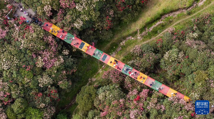 4月17日,游客在毕节市百里杜鹃金坡景区观赏游玩。新华社记者 陶亮 摄