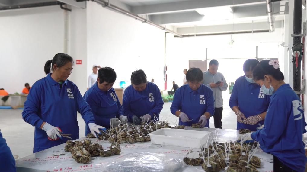 一只只鲜活的大闸蟹,经过严格的人工筛选、抽检、捆绑和包装,依托冷链物流,24小时内即可从黄河口直达上海、北京、广东等地消费者的餐桌。