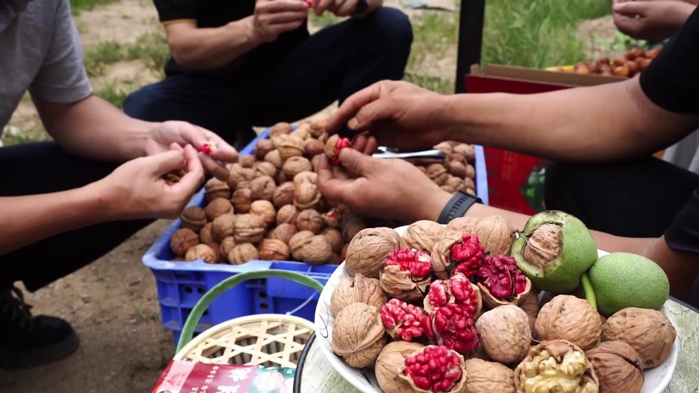 在商洛市洛南县景村镇,万亩红仁核桃树上挂满了果子,村民用竹竿敲打核桃坠地的簌簌响声,成了山林间最动听的“丰收曲”。刚刚采摘下来的新鲜红仁核桃被及时运往附近加工厂进行清洗、筛选、包装,准备发往全国各地。