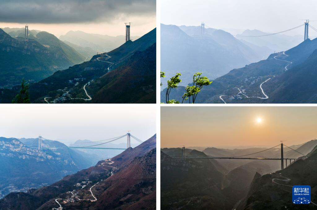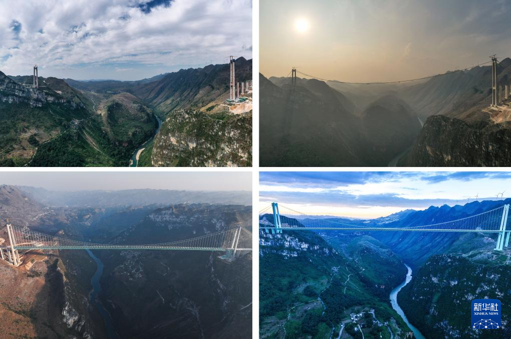 拼版照片:左上图为桥塔建设中的贵州花江峡谷大桥(2023年11月8日摄),右上图为施工猫道搭建中的贵州花江峡谷大桥(2024年3月26日摄),左下图为合龙前的贵州花江峡谷大桥(2025年1月13日摄),右下图为通车前一天的贵州花江峡谷大桥(2025年9月27日摄)。新华社记者 杨文斌 摄