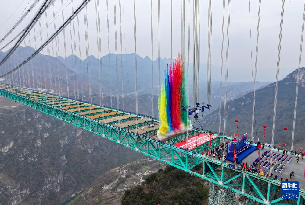 2025年1月17日,贵州花江峡谷大桥成功合龙(无人机照片)。新华社记者 刘续 摄