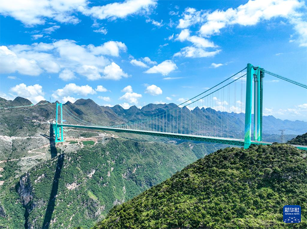 9月28日拍摄的贵州花江峡谷大桥(无人机照片)。新华社记者 欧东衢 摄