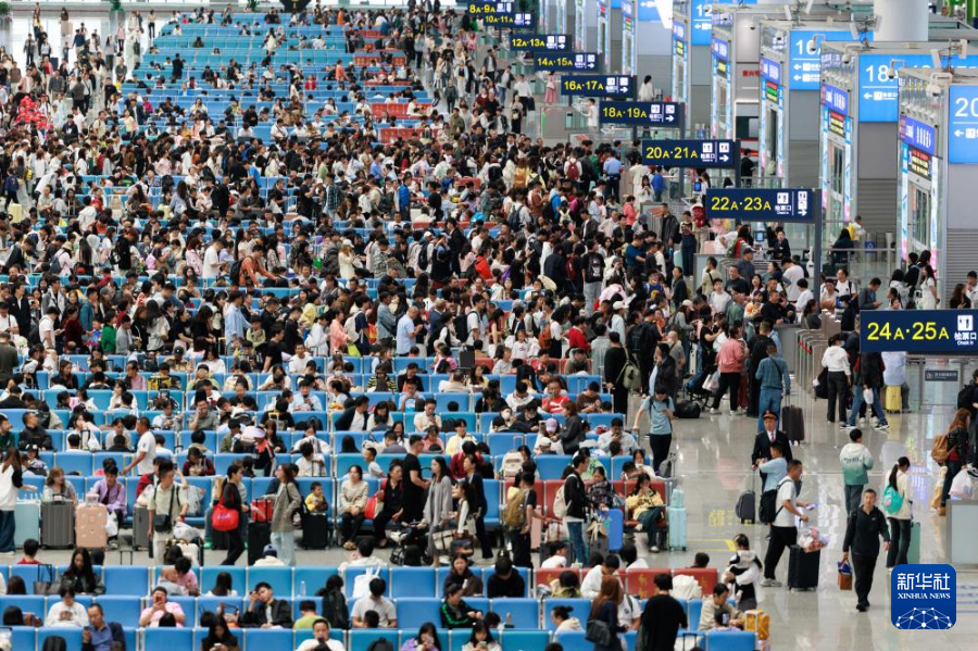10月1日,旅客在贵州省贵阳北站候车大厅候车。新华社记者 刘续 摄