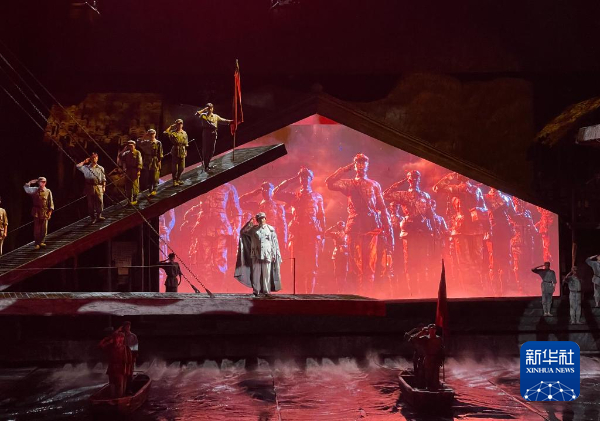 距离纪念馆不远的伟大转折剧场内,大型长征文化沉浸式演艺《伟大转折》同样吸引人。演出打破传统舞台边界,“敌机轰炸”的音效与灯光交织,让广东游客陈曼曼攥紧手心。“看到毛主席在危机关头引领方向,我更懂‘转折’的意义。”她说。