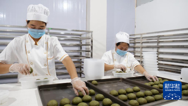 在这个山区小县城,不少本地手工月饼也受到消费者喜爱。9月以来,贵州梵净黔惠德食品开发有限公司主打的抹茶味天麻火腿月饼,采用纯手工制作,每天生产量达到1.2万个。公司总经理岑德芬介绍,他们8月就拿出计划,准备新鲜食材,通过对月饼口味进行创新,公司目前生产了6款产品,每天有30多名工人手工制作。