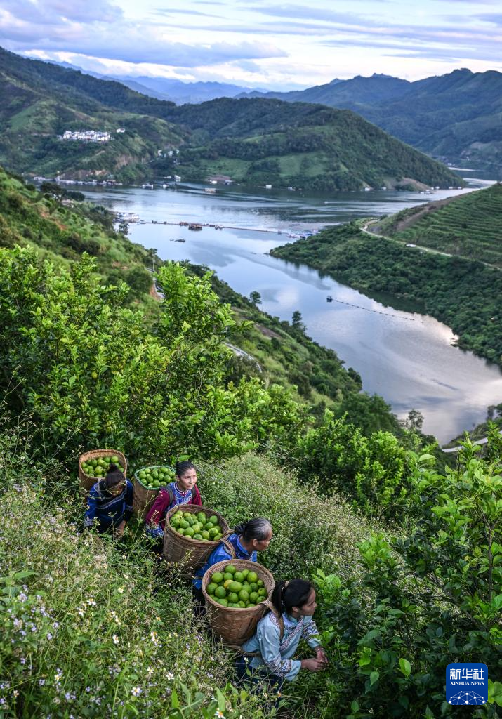 10月15日,村民在望谟县蔗香镇青柠檬基地搬运柠檬。新华社记者 杨文斌 摄