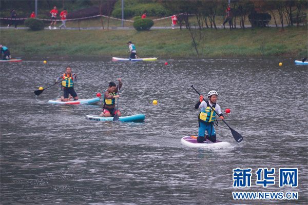 桨板比赛现场。新华网发(杨馨慧 摄)