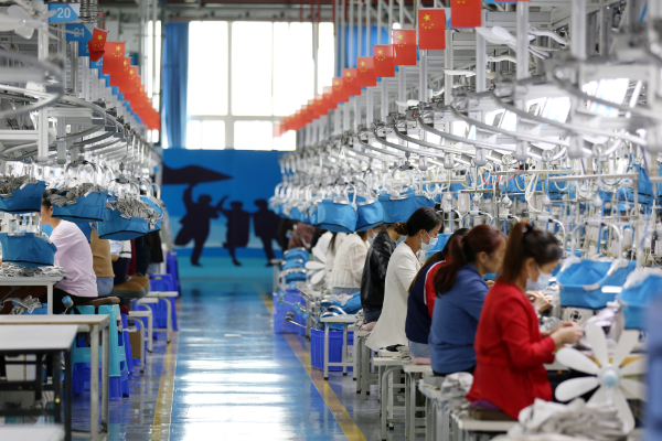 都匀市绿茵湖产业园区轻纺企业生产线。(肖伟 摄)