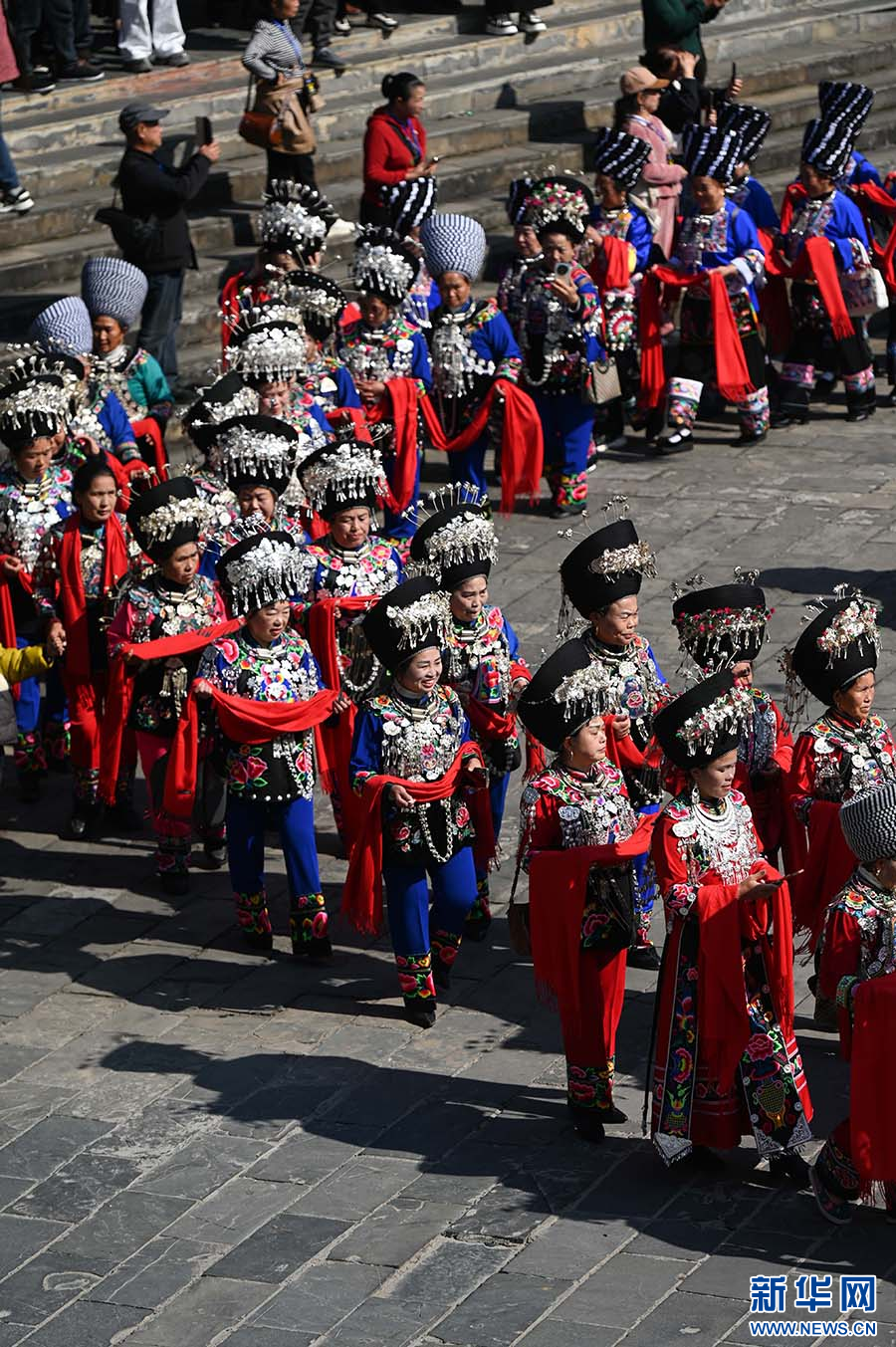 11月15日,苗族同胞在贵州省铜仁市松桃苗族自治县正大镇苗王城景区欢庆苗年。