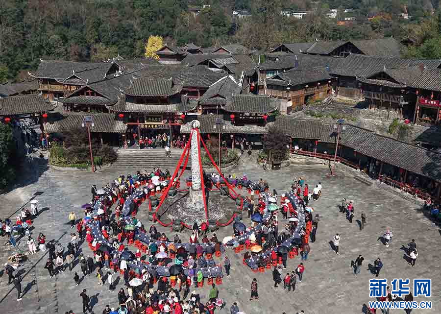 11月15日,苗族同胞在贵州省铜仁市松桃苗族自治县正大镇苗王城景区欢庆苗年。新华网发(谢慧芳 摄)