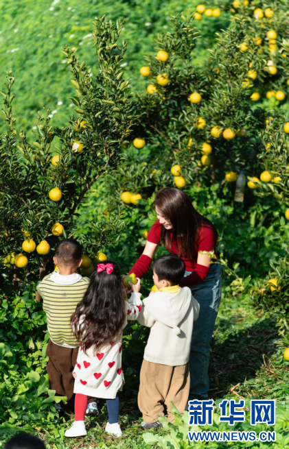 游客现场采摘脐橙。新华网发(陈伟红摄)