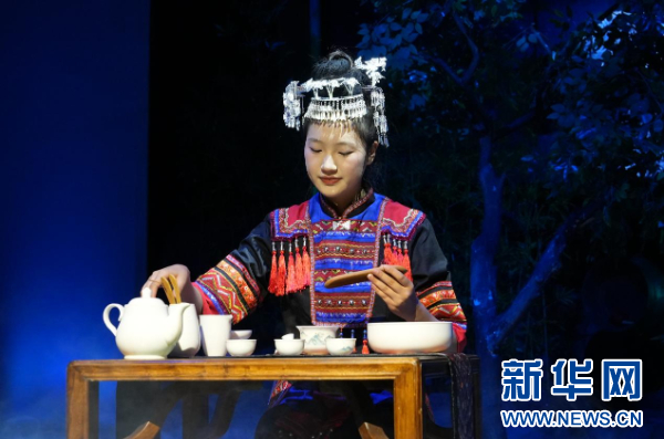 席间,非遗表演轮番登场。侗族大歌的空灵和声、苗族飞歌的高亢嘹亮、布依族铜鼓十二调的厚重底蕴,交织成动人的民族交响。苗族木叶吹奏的悠扬曲调、锦鸡舞的轻盈灵动,搭配“高山流水”的敬酒礼仪,让来宾深度感受少数民族的热情与浪漫。