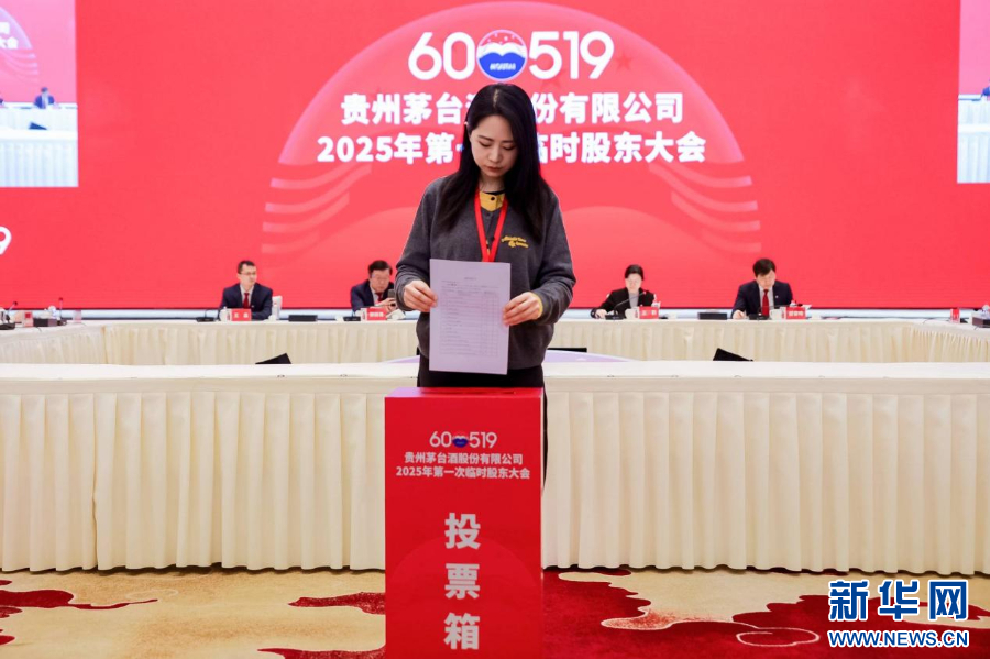新华网贵阳11月28日电(卢志佳)11月28日,贵州茅台酒股份有限公司(以下简称“公司”)在公司本部召开了2025年第一次临时股东大会,大会对董事选举、中期利润分配、股份回购等相关议案进行了审议表决。