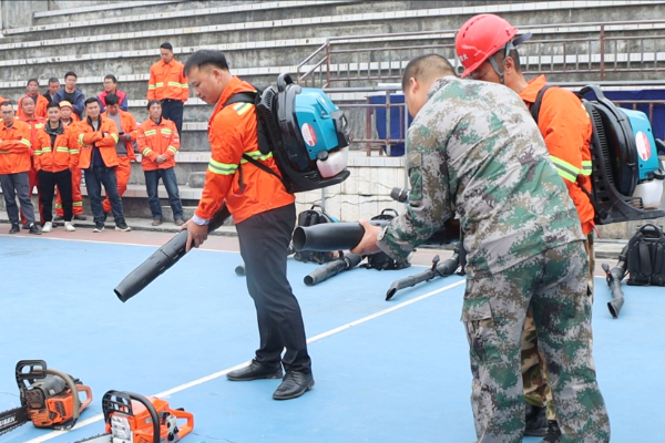 在实战演练现场,无人机飞演环节亮点十足。工作人员熟练操控无人机,在模拟林区上空精准完成巡航侦察、火情监测、热源探测及空中喊话预警等多项科目,以科技赋能筑牢森林防火 “空中防线”;另一边,风力灭火机、油锯实操考核同步开展,各村选派的参训队员精神饱满、动作娴熟,有条不紊地完成模拟扑火、开辟防火隔离带等实战化任务,充分展现了过硬的应急处置能力与协同作战水平。
