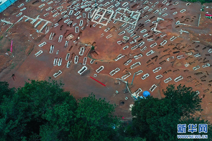 2023年3月30日拍摄的贵州贵安新区大松山墓群挖掘现场(无人机照片)。贵州贵安新区大松山墓群入选2022年度全国十大考古新发现。新华社记者 杨文斌 摄