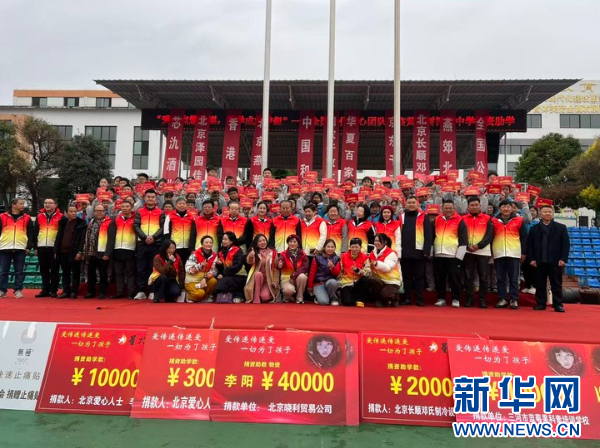 全国公仆爱心团队在枫香乡九年制学校开展捐资助学活动。新华社记者 李凡 摄