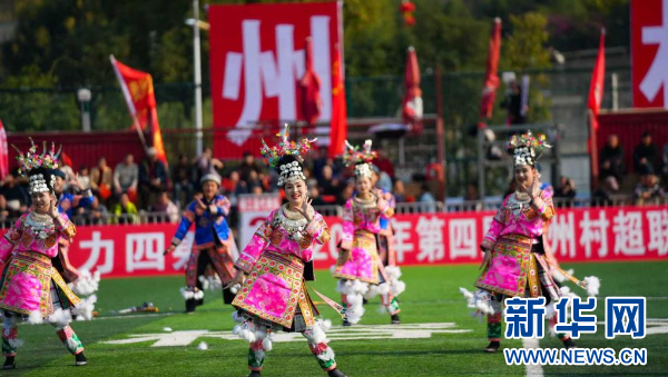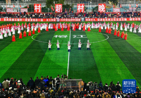 1月2日,演员在第四届贵州“村超”开幕式活动现场表演。新华社记者 杨文斌 摄