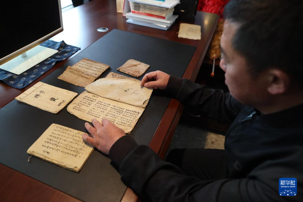 代鑫在查看记录有唱词的古词谱(1月27日摄)。新华社记者 刘续 摄