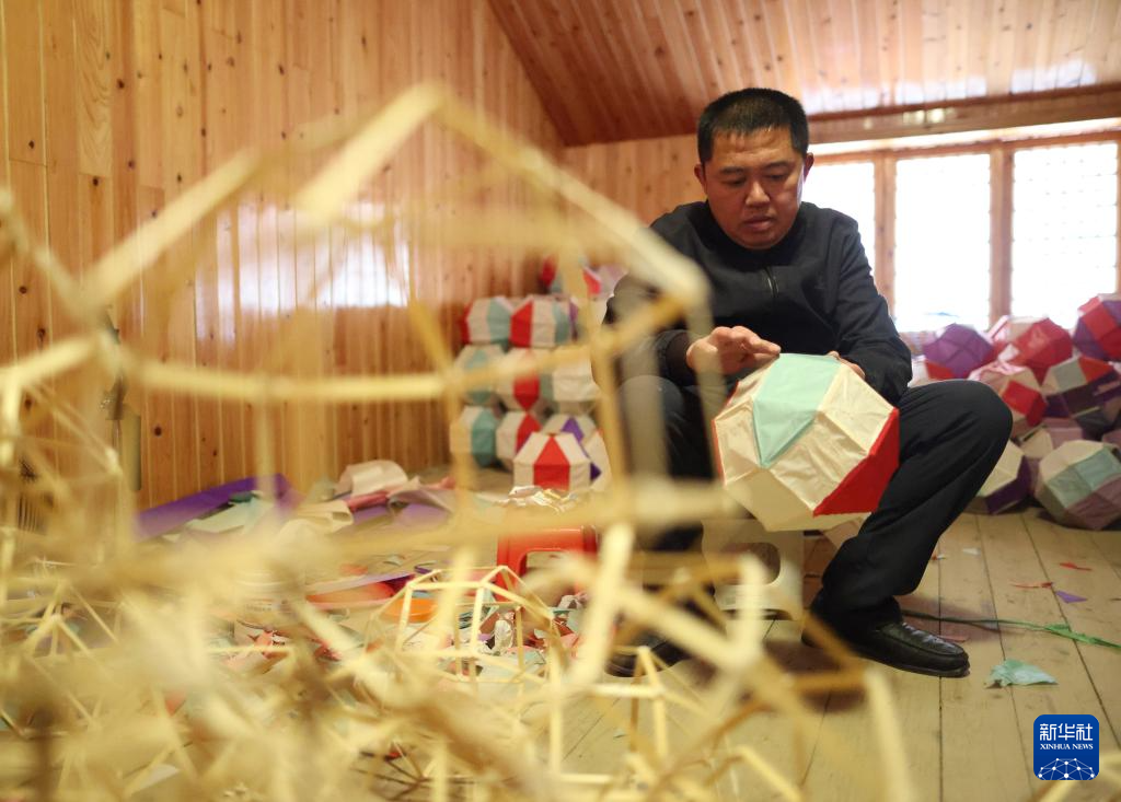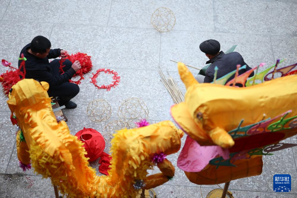 代鑫在制作毛龙的组成部分“八方灯”(1月27日摄)。新华社记者 刘续 摄