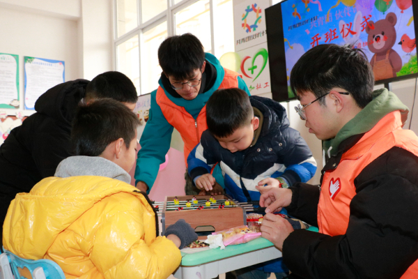 “老师,你教的这个方法太好啦,我一学就会。”“今天我做了关于腊八粥的艺术画,我要带给爸爸妈妈看一看。”……开班当天,城北社区紫薇城服务点内暖意融融,35余名孩子在志愿者的陪伴下,或专注学习,或动手创作,或参与互动游戏,脸上洋溢着灿烂的笑容。