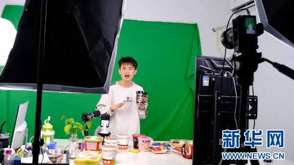 主播在直播间内销售陈薯酸辣粉。