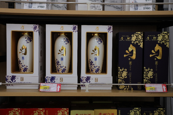 广惠街道一家便利店的老板说:“之前进了一批红花匀酒,都卖光了。现在只有青花。”