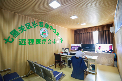七星关区长春堡镇卫生院的医护人员在为患者进行远程医疗会诊。陈曦 摄