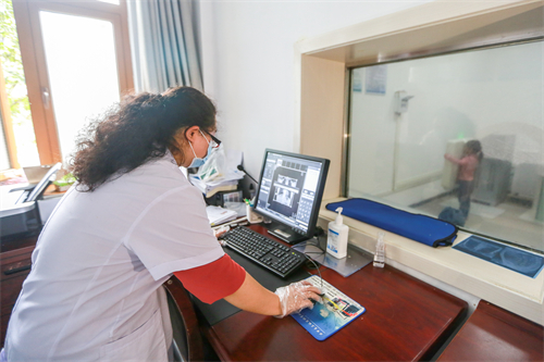 七星关区柏杨林街道卫生院的医护人员在对患者进行CT检查。