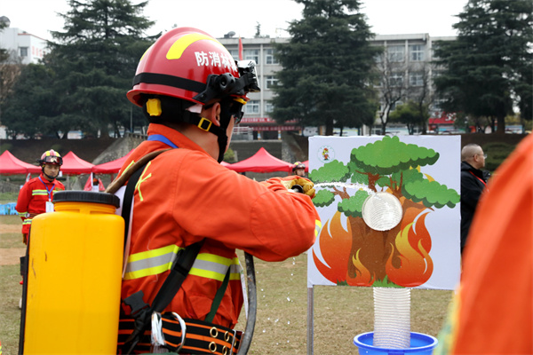 选手参加背负式水枪操作比赛。新华网 周远钢 摄