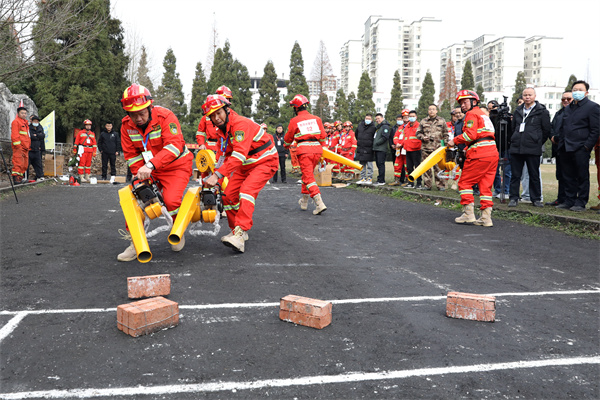培训环节,贵阳市森林防火中心森林消防队现场进行了消防水车灭火运用及水带连接(二人三带)、班组防火战法的展示,演示指挥员对战法内容、要求及注意事项进行讲解。“比武”环节,9支参赛队伍进行了背负式水枪操作、风力灭火机组装操作、灭火弹投掷、水带接力(二人三带)、400米负重越野等项目的比拼。