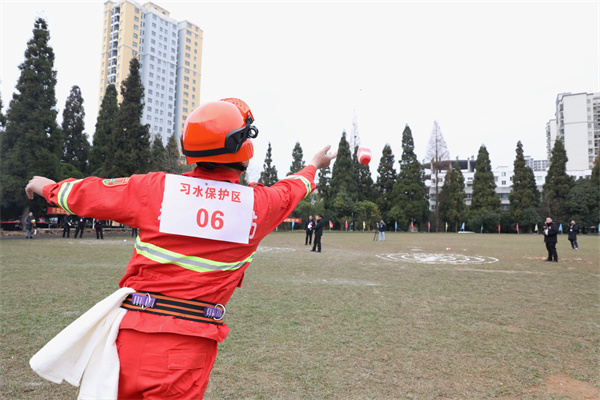选手参加灭火弹投掷比赛。新华网 周远钢 摄