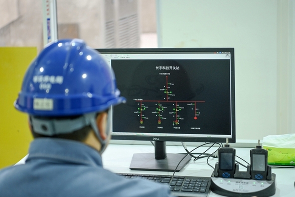 南方电网贵州凯里岑巩供电局工作人员核实企业电压柜的负荷情况。(杨启志 摄)