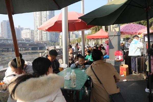 热气腾腾的包子,色味俱佳的粉面,滋滋作响的烧烤,回味无穷的火锅,以及热闹激情的“干杯”,炊烟起,人间美味依旧在。(陆家连)