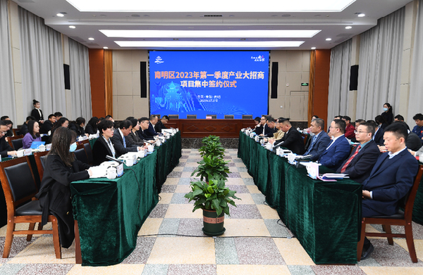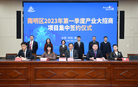 2月27日,南明区举行2023年第一季度产业大招商项目集中签约仪式。仪式上,18个签约项目集中亮相,总投资金额近131亿元,涵盖电子信息制造、生物经济、数字经济、总部经济、文旅商数尚融合等重点领域;此外,南明区还与4家银行签订战略合作协议。本次产业项目合作、基金赋能、金融加持将为南明强化重点产业引领功能、推动经济社会高质量发展增添新活力。