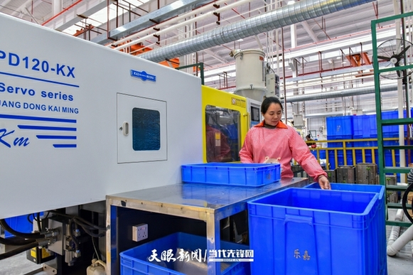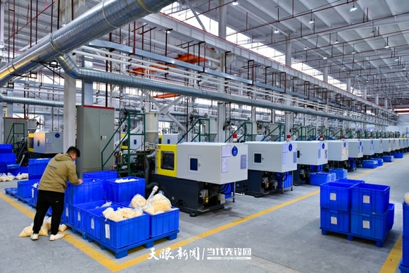 在松桃经开区标准化厂房区,乐嘉文创科技有限公司占了五栋楼,整整19层楼,现有员工近2000人。记者在车间生产线看到,注塑、喷油、移印、品检、装配……流水作业,井然有序。