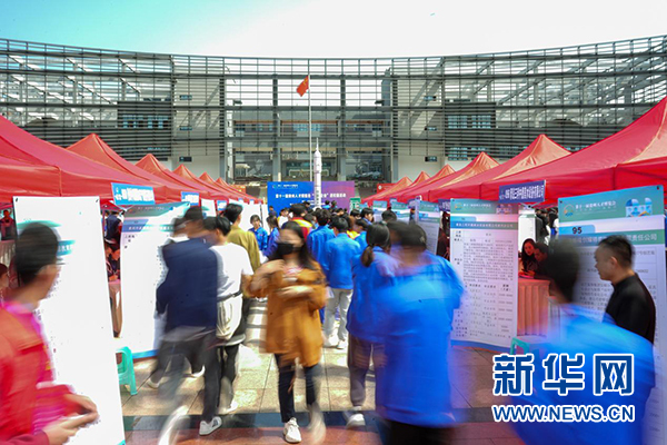 活动现场,毕业生在寻找适合的岗位。新华网发(龙建睿 摄)