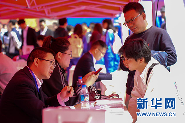 活动现场,毕业生与用人单位洽谈。新华网发(龙建睿 摄)
