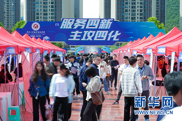 新华网贵阳4月26日电 4月26日,“人才引领 一路黔行”第十一届贵州人才博览会“重点企业”进校园活动在贵州(清镇)职教城贵州工业职业技术学院举行。来自全国各地的143家用人单位,提供了就业岗位476个,涉及高新技术、装备制造、医药食品、电力、建筑、信息等行业,吸引了来自清镇职教城10余所院校毕业生。