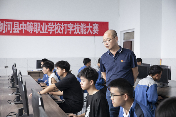 为了能让学生安心求学、静心学技。袁荣昌花了不少心思。2022年7月底,他刚来到剑河时,周边其他学校招生已结束,而剑河县中等职业技术学校只招到52名学生。面对生源不足的情况,他努力向多方面沟通。在他的申请和协调下,县教育和科技局两次召开职中招生协调推进会,同时引入合作企业资源开展助学行动,终于在当年秋季开学时,2022级新生由52人上升至234人。