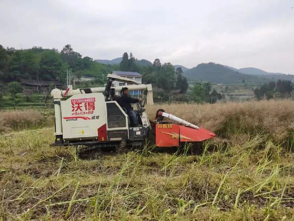 “我们村有1000多亩油菜,2台机子每天可以收50多亩,10多天可以收完。每亩地大概有150斤菜籽。”大路镇长征村党支部书记张勇华说道。