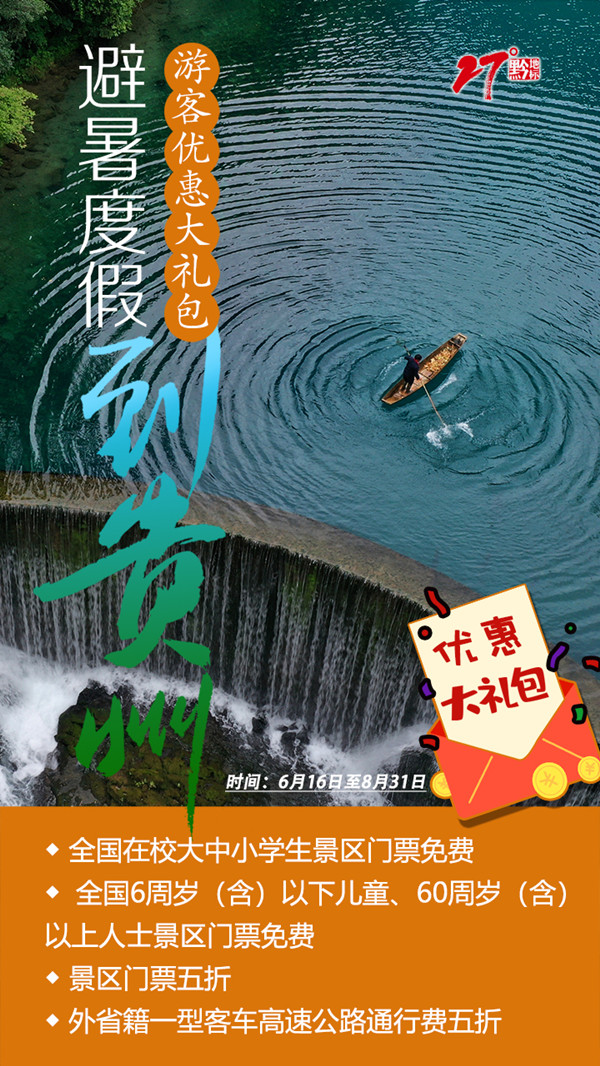 每周五(00:00)时至周日(24:00)时,入黔旅游的外省籍一型客车,使用ETC电子支付方式在贵州省境内高速公路任一收费站出站的,给予贵州省境内高速公路通行费减半优惠。(记者 赵相康 陈江南 海报设计 赵怡)