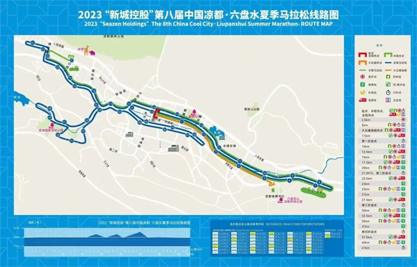 赛道从7公里处进入钟山大道的折返赛道,而在此段11公里——13公里则会再次经过水城古镇和凤池园。前段的路较为平缓,选手可以边看右手边的风景边享受比赛的竞技感,在平坡可以缓慢加速。