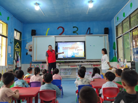万山区烟草专卖局(分公司)联合铜仁市局(公司)法规科组成“黔彩”志愿服务队,为鱼塘乡江屯村小学幼儿大班、中班的小朋友上普法课。针对孩子们年龄较小、认知能力不足等特点,运用生动有趣的图片、短视频等形式,结合真实案例,引导孩子们知法、守法、用法,从小树立法律意识、规矩意识,增强自我保护观念。