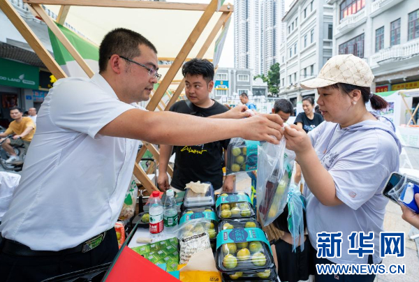 6月23日,广州市民在镇宁蜂糖李品牌推介活动现场品尝蜂糖李。新华社发(受访者供图)