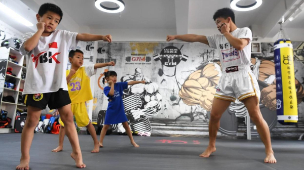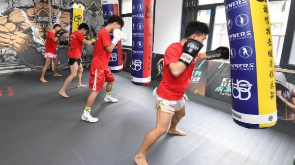 6月28日,在位于南明区青云路步行街的福馆搏击健身俱乐部内,数十名成人搏击班的学员正在进行训练。近年来,随着健身领域的不断发展,以技巧、速度和力量为核心的综合性体育运动自由搏击开始走入大众视野,吸引着越来越多的青少年参与其中,感受搏击运动的独特魅力。(赵松)