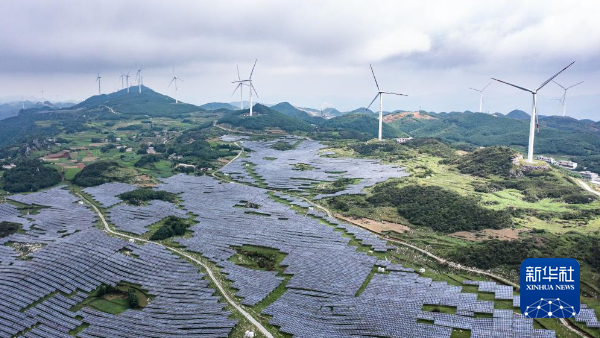 位于毕节威宁县二塘镇的贵州金元梅花山农业光伏电站(7月6日摄,无人机照片)。新华社记者 陶亮 摄